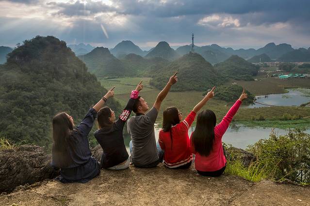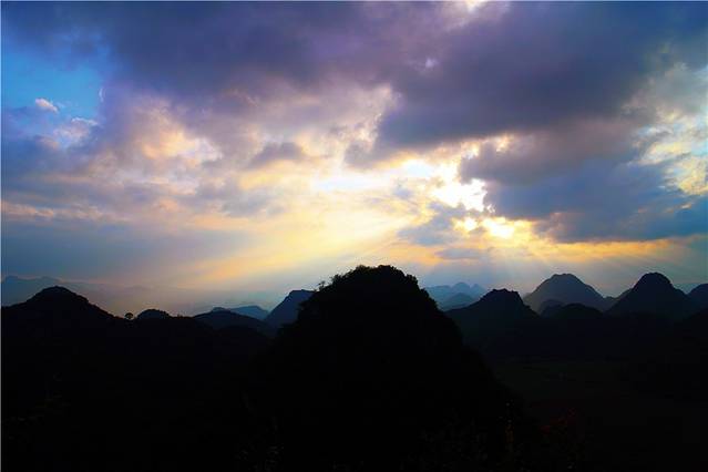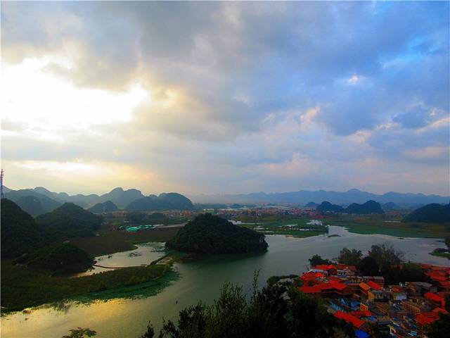 日落前的各种摆拍。从高处俯瞰普者黑