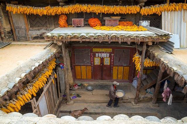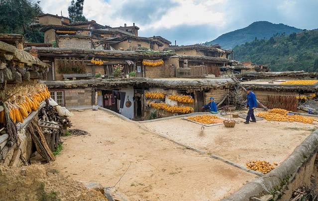 散步、家访当地居民,秋季可以看到房屋都挂满玉米