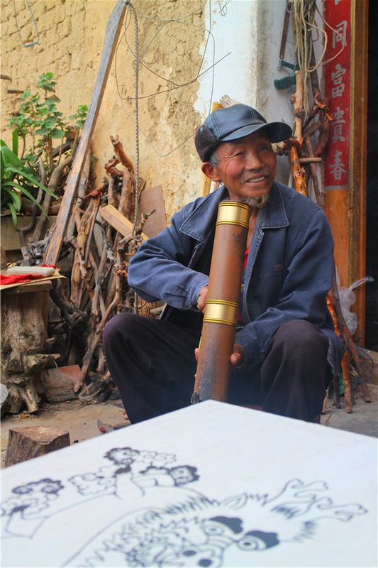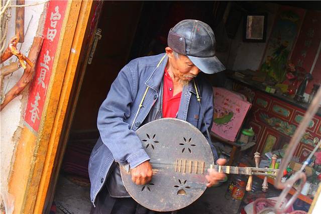停车场旁边就是售票的地方,城子古村维护费是50元/人,我们沿着村子进来,有一群老人坐在门口晒太阳,上面还有城子古村居民几个大字,这边的人非常的淳朴。在迷宫房我们遇到一个老爷爷,给我们各种献宝,他们家有很多自己做的拐杖,还有小挂饰,有个朋友问老人:你这个挂饰怎么卖啊?老人说不买的。他还会画画,还有弹的那是什么琴我就真的不懂了。