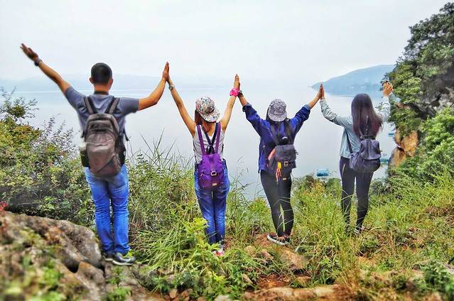游玩后大概5点半吧,我们就上酒店的后山就拍日落啦。酒店后山的路真的很陡。爬上去大概半个小时,其实也不高,但是就是要费点劲,不过上到山上什么都值得啦,可以看到抚仙湖的全景,包括我们今天一整天游船的地方。不过山上蚊子很多啊,还好早有防备,带了一些驱蚊水