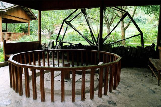 进来就看到水车,水车又称孔明车,是我国最古老的农业灌溉工具,是先人们在征服世界的过程中创造出来的高超劳动技艺,是珍贵的历史文化遗产。相传为汉灵帝时毕岚造出雏形,经三国时孔明改造完善后在蜀国推广使用,隋唐时广泛用于农业灌溉,至今已有1700余年历史。