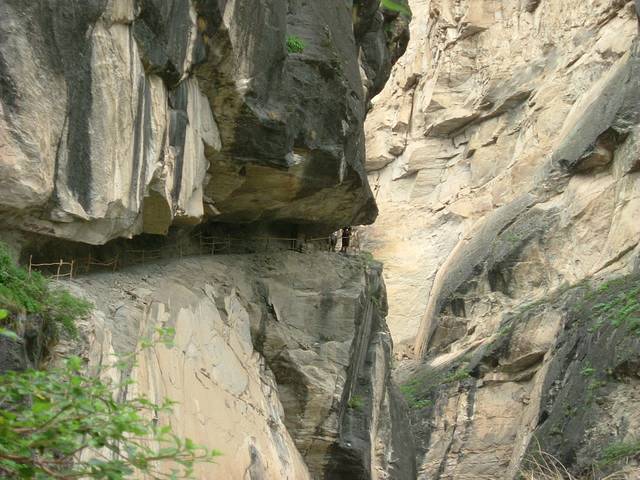 游者可以通过新修的栈道到达“上虎跳”。一般选用徒步方式,较成熟的徒步线路。有高路和低路之分,体力一般者可以选用低路。
