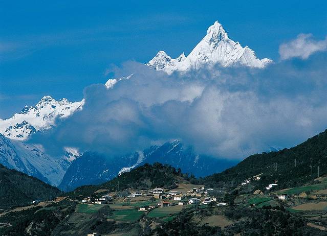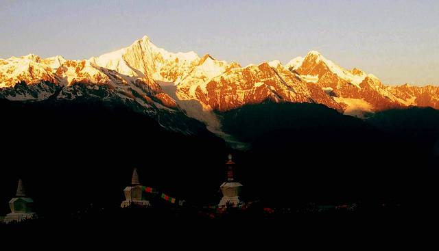 5、梅里雪山位于迪庆州德钦县,距离丽江12个小时的车程,梅里雪山的主峰卡瓦格博海拔最高达到了6740,梅里雪山有十三个太子峰,俗称梅里雪山十三太子峰,梅里雪山是不可以攀登,只可以用神圣、崇拜的眼光去欣赏、感受它的美丽,传说能见到日照金山的会集幸福和吉祥于一身。