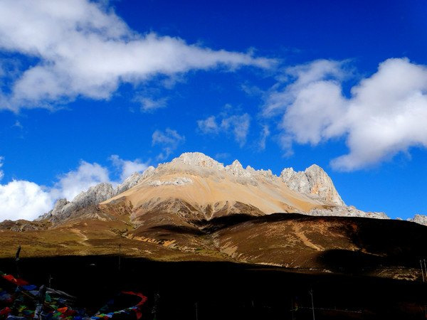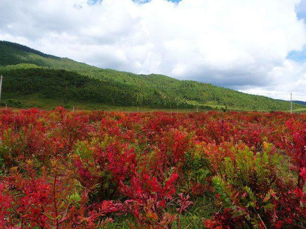 10月的香格里拉,很多花火红盛开,10月-次年5月都是看梅里雪山的好季节,常能看到主峰。