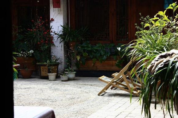在丽江,基本上每家客栈都有这样的院子,花草,椅子,阳光。。。