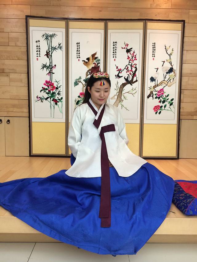 明洞的第一站是首尔国际文化旅游中心,就在ZARA旁边那栋楼上,18:00之前有韩服体验活动。活动中心的工作人员都可以讲英文,只要在韩服体验册上签个字,就可以试穿韩服啦。活动中心韩服不多,女生大概20多套,男生只有3、5套,选好了工作人员帮忙穿好,自行拍照。活动中心里有几个简单的布景,每个拍一拍凹一凹造型,最多10分钟就结束了。