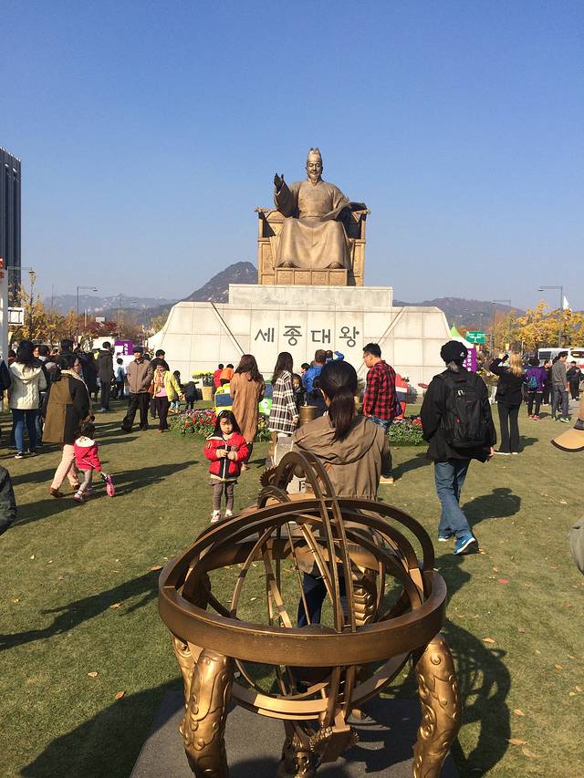 光华门广场,在首尔的地位和北京的天安门广场差不多。我们正好碰上一个主题weekend的活动,阳光和煦的大道上到处都是散步溜孩拍照做活动的市民,生活气息非常浓厚。