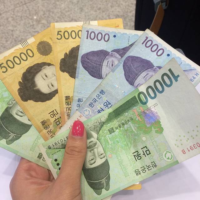 在仁川机场取完行李出关后有很多Currency Exchange,我随便找了一家(主要因为门口有都教授的广告牌)兑了1000人民币的韩币,汇率好像比明洞差了一些,但因为兑得少,估计差别也没有很大。事实证明,大街小巷包括便利店都可以刷卡,兑的韩币到走的时候都没用完。