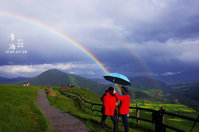 4、提醒大家像青海、祁连山啥的海拔高一些的地方气候多变,阴晴不定,相应的雨具衣物要随身携带好,本次为了祈祷好天气特意带上了晴天娃娃果然威力巨大!在卓尔山上体会到了前一秒雨水后一秒阳光,人品大爆发的看到了双彩虹。