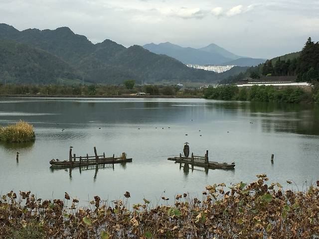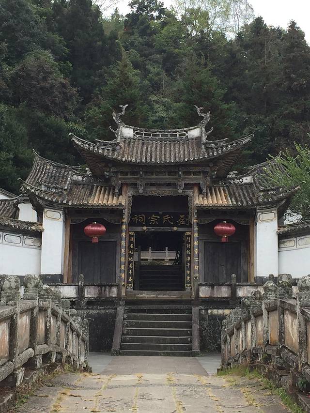 规模很大,祠堂前有拱桥,桥下是荷塘,正面对着野鸭湖,被靠那啥山,端的好风水。可是要门票,我们逃票进镇的