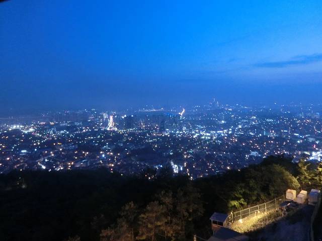 在塔下的平台上也能看夜景,与其他大城市也大同小异,反而不那么令人心动,反倒是呼啸而过的冷风,吹得大家伙不时瑟瑟发抖。我们还看到有人穿着羽绒服上来的,当然也有不怕冷的,短袖短裙,义无反顾。