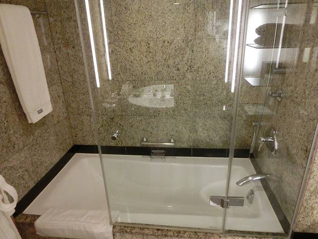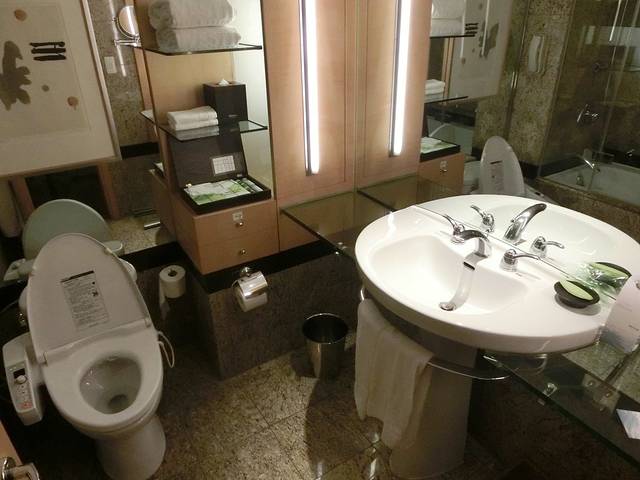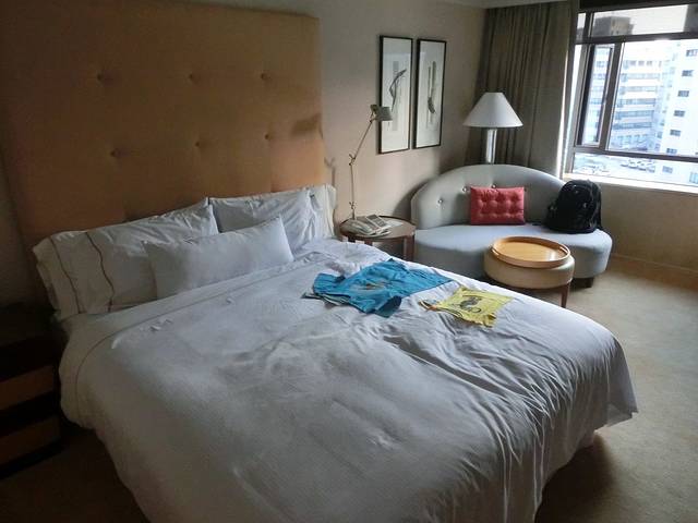 我们预定的是豪华商务大床房,房间大小适中,设施不算非常新,但整体感觉还是很不错的。床垫和被褥软硬适中,睡起来很舒服,卫生间和淋浴房设施完备,有浴缸和智能坐便器(能喷水洗屁屁的那种),并提供各种洗漱用品,但没有牙刷。卫星电视提供大约100个频道,中文只有凤凰卫视和CCTV4,超过2/3是韩文频道。唯一有点欠缺的是网络是要收费的,官网上介绍是22000韩元/天,还只提供有线接口。幸好我们有Egg,不然待在房间里岂不是无事可做。