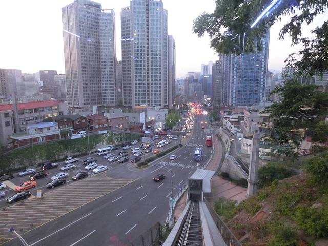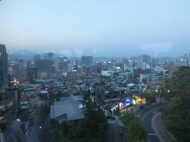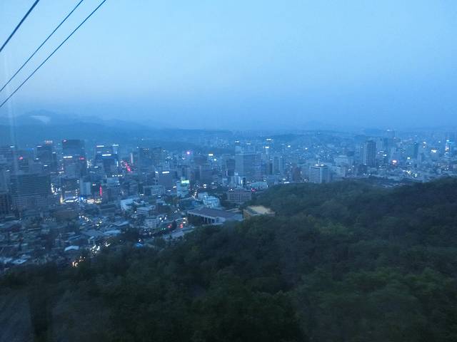 喝完咖啡,天色渐晚,由于暂无饥饿感,我们决定先去南山,见识首尔塔,晚饭则留在下山后再吃。