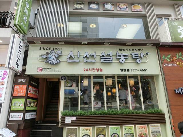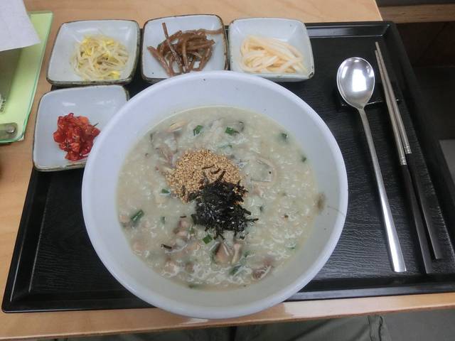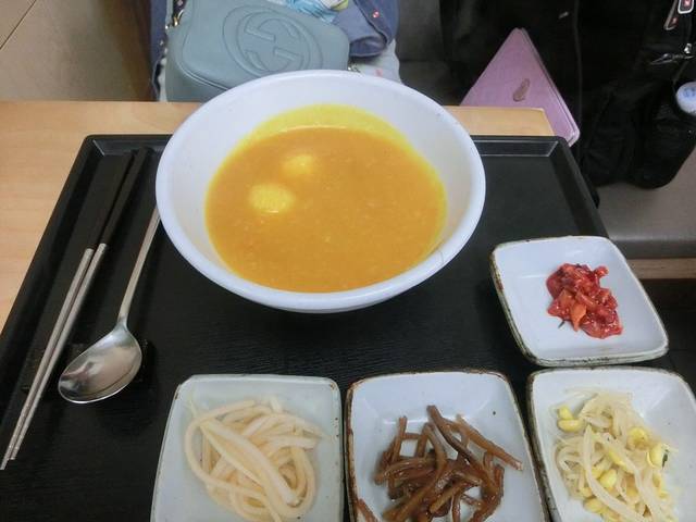 晚饭先吃雪浓汤,我们的选择是神仙雪浓汤。这家店很好找,就在明洞艺术剧场的十字路口附近,和前几天吃过的味加本粥店位于同一幢楼,神仙在一楼。