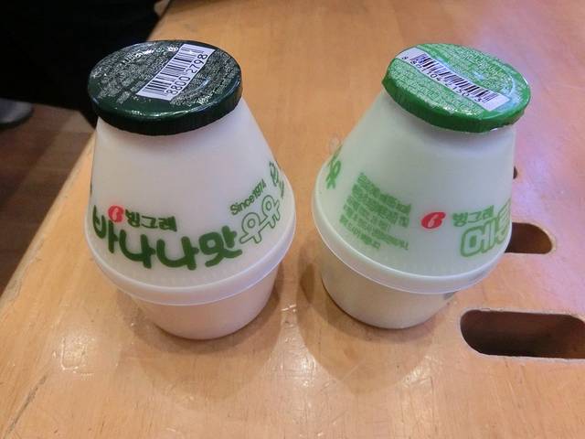 香蕉牛奶,左边是原味,右边是哈密瓜味