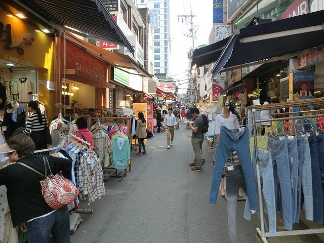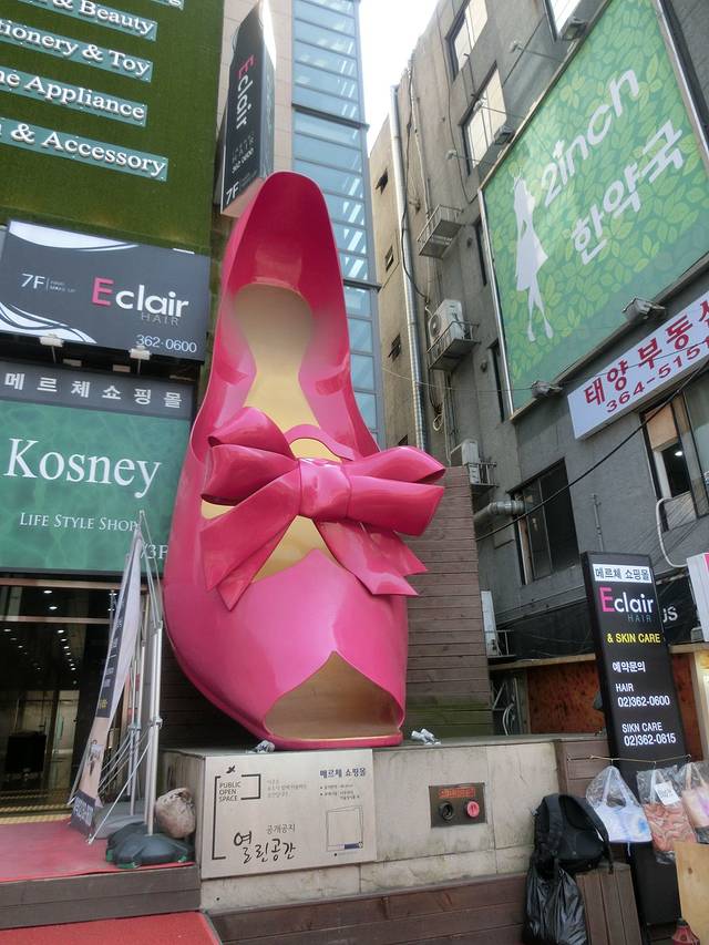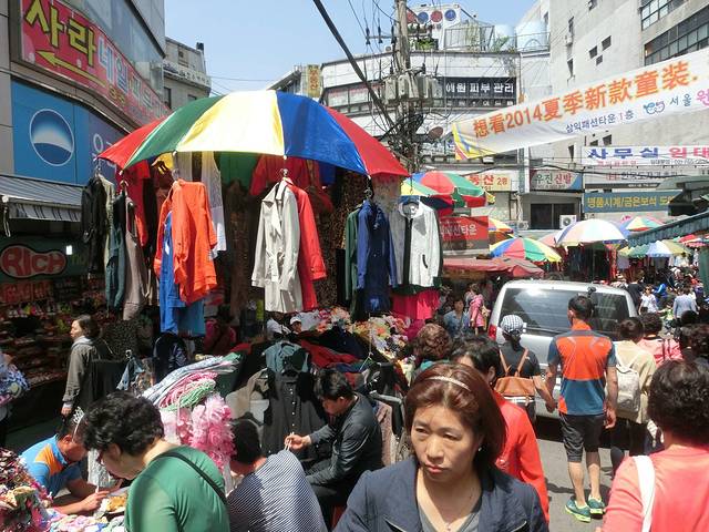 先是南大门市场和新世界百货。南大门市场就在崇礼门旁,几乎占据一整个街区,里面卖什么的都有,从衣服鞋帽、时尚饰品、日用百货到参茸补品,一应俱全,且各有各的范围,地域分明。到这里来购物的大多数是韩国的一般普通民众,市井气氛极为浓郁。不过这里的摊位面积都很小,进去后四周不是货物就是顾客,转个身都难。还有那些位于二楼的摊位,层高很低,有时候我和LP还得低着头才能通过,幸好通风系统还算不错,不然真的要闷死了。