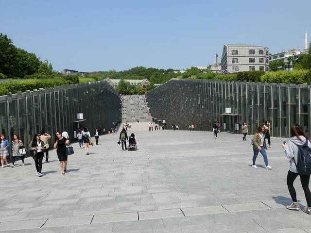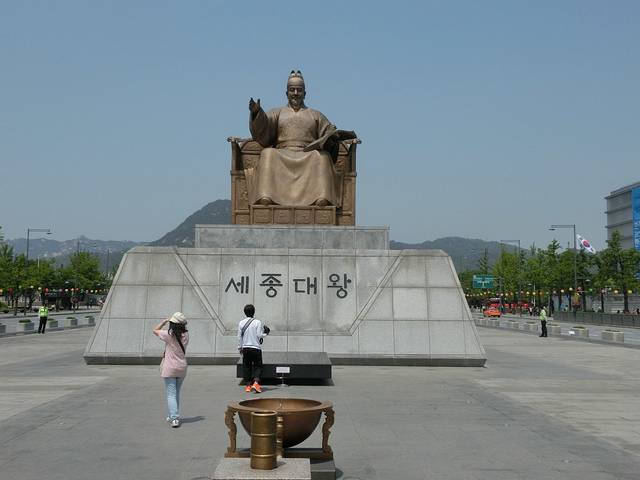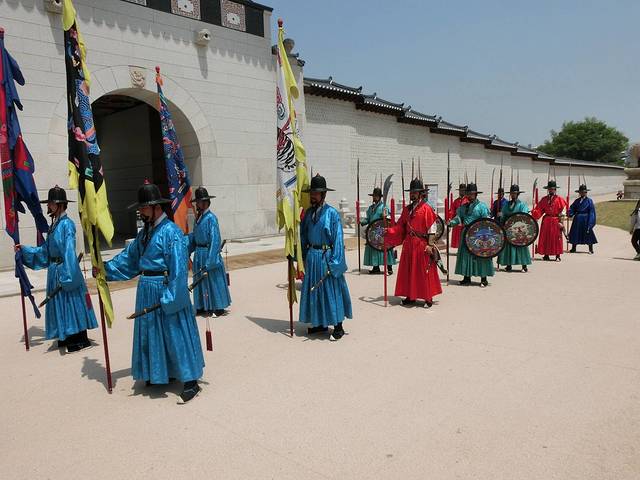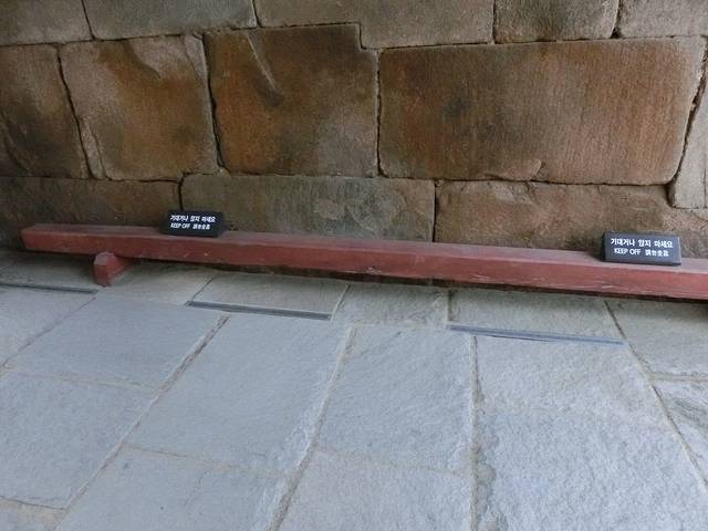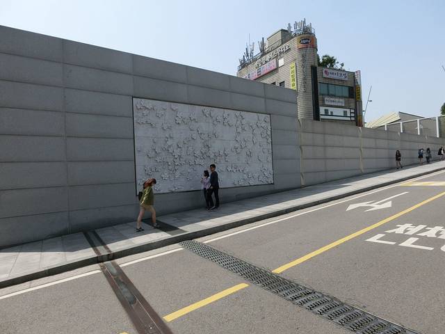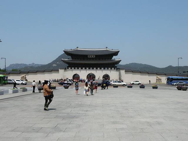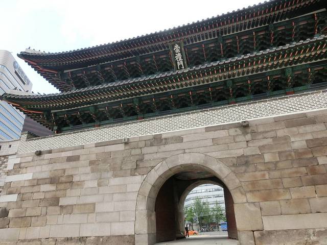 崇礼门的竖写牌匾(朝鲜太宗李芳果长子让宁大君手迹) 崇礼门位于首尔的交通干道上,因此得花点时间穿过车道。整个大门及其附属设施占地不大,且免费供参观。不过就算仔细看,也就5-10分钟的时间,游客无法上城门,只能在下面看看,拍拍照,穿过城门,后面就是车道,其实也没多的地方可去。但每周六和周日的固定时段,允许少量游客登上城楼参观,能不能赶上,就得看诸位的运气了。