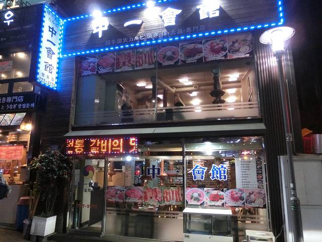 中一会馆位于明洞南部,就在太平洋酒店旁,这里周边的几条小巷子,分布着很多餐馆,却没有明洞中心地带的喧闹,倒是比较安静,很适合慢悠悠地享受烤肉大餐。餐厅的店面不大,如果不是醒目的灯箱,我们还差点走过了。