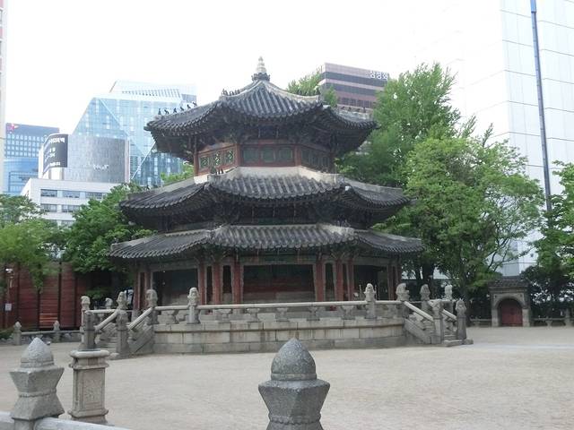 1910年日韩合并后(对整个朝鲜民族来说,这是件奇耻大辱的事情。),当时的日本朝鲜总督府为了向外国客人提供更好的住宿服务,决定兴建西式酒店,结果将之前大韩帝国皇帝祭天的圜丘坛给拆掉了一块,腾出地方,兴建了朝鲜酒店。这可相当于在天坛旁动土,大大坏了朝鲜的风水。所以现在的威斯汀朝鲜酒店旁,还留有圜丘坛的主体建筑及残余设施,差不多就相当于酒店的后花园,而圜丘坛与酒店建筑的中西合璧,也成了威斯汀朝鲜酒店的一个象征。其他豪华酒店可没那么幸运,跟祭天的天坛搁一块儿。