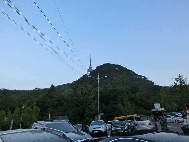 但是有件事必须先说,首尔5月的早晚温差有点大,气温不高于10摄氏度,特别是去南山这天,还刮风,走在路上还真是有凉感,LP非叫我事先在背包里放上外套。事实证明,上了南山,这件外套可以发挥出很大功用。山上那个风啊,刮的真叫一个冷,要是不穿外套在山上待上一段时间,搞得不好真会感冒的。