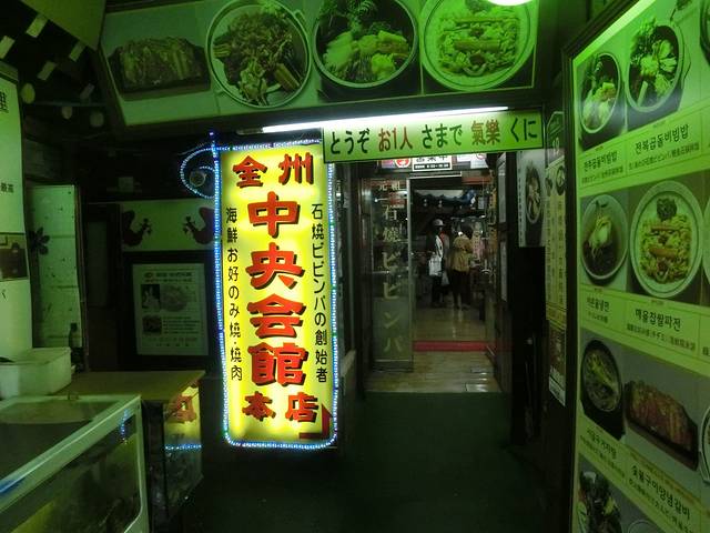别看全州中央会馆距离地铁4号线的明洞站咫尺之遥,却并不临街,而是在明洞的小街内,夹在几家大的服装店之间。如果匆匆而过,几乎会将这家店忽略,我也是瞥见他家放在路旁的招牌才发现的。店铺门面很小,且被各种花哨的餐单灯箱包围,我个子高,似乎感觉还是低着头进门的。