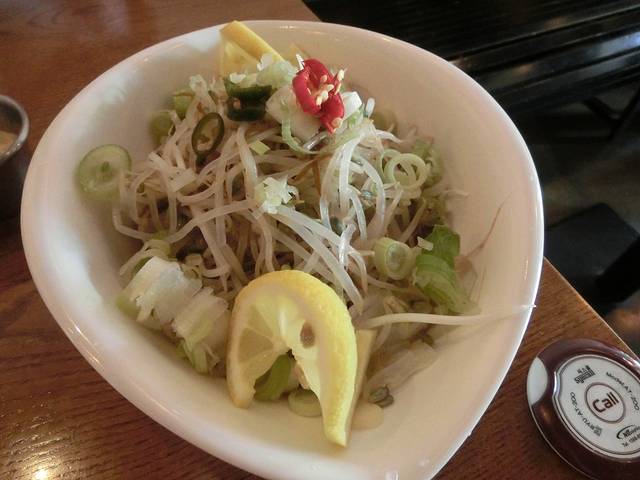 至于我的那份,后来被她在微信上描述为可怜的“食素者”。土豆和玉米吃着实在一般,反倒是那碗沙拉,清凉的豆芽,配上柠檬和果醋,酸酸甜甜的,在略显炎热的下午,那吃着叫一个爽。吃素吃素,总算还咽得下去。