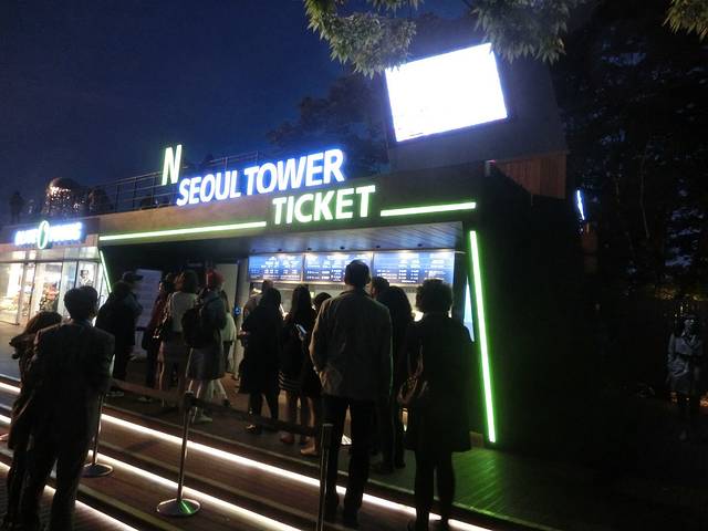 南山缆车站及售票处位于透明电梯旁,缆车票价为单程5000韩元,往返票8500韩元。买完票得走到4楼的候车厅排队等。这儿不是没有直达电梯,只不过有明确标识,电梯仅供老弱病残孕等使用,凡是有胳膊有腿,四肢健全的,都得老老实实爬上4楼。