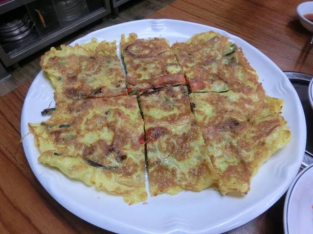 考虑到还要吃晚饭,我们没点太多东西,就一个传统全州石锅拌饭(10000韩元)和一份海鲜葱饼(15000韩元)。主要怕点太多吃不下了不太好,后来结果证明这点东西刚刚好。