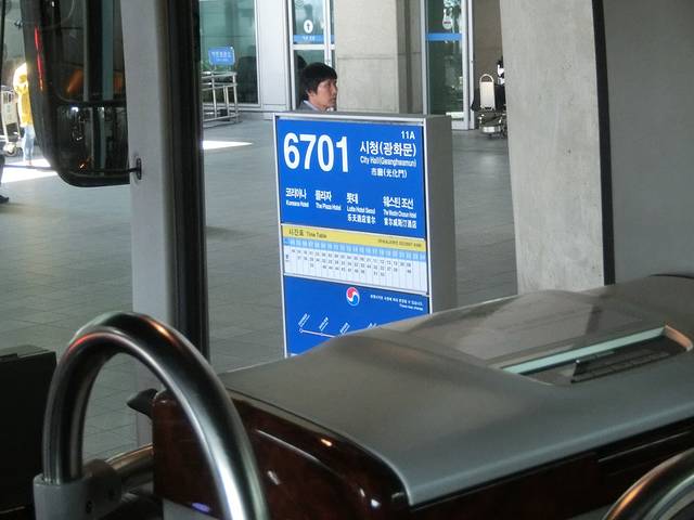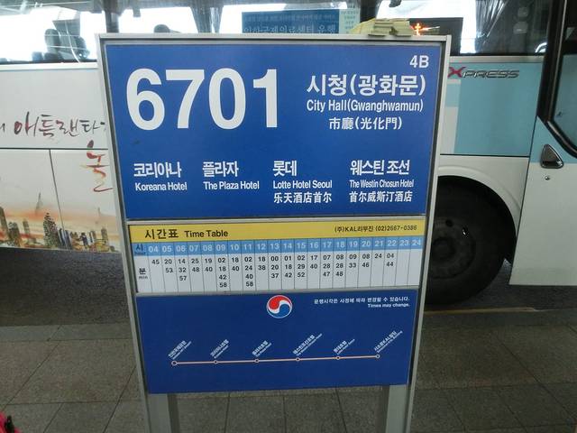 豪华巴士在仁川机场到达大厅外的Gate 4B和Gate 11各有一个站点,门旁以及停靠站处都有售票处,我们告诉客服要去的酒店,她们就会告知我们所需要搭乘的巴士名和票价,当然提前查好也可以。