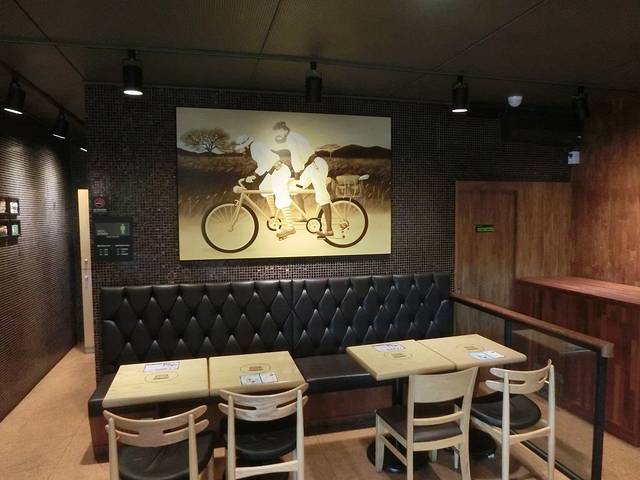 整座店铺是三层小楼,时尚大气,每层的装修风格都不尽相同。甜品店人气超旺,我和LP进去后,发现点餐区排了长队,而且一二层居然全满,最后还是在第三层才勉强找到一个双人位。