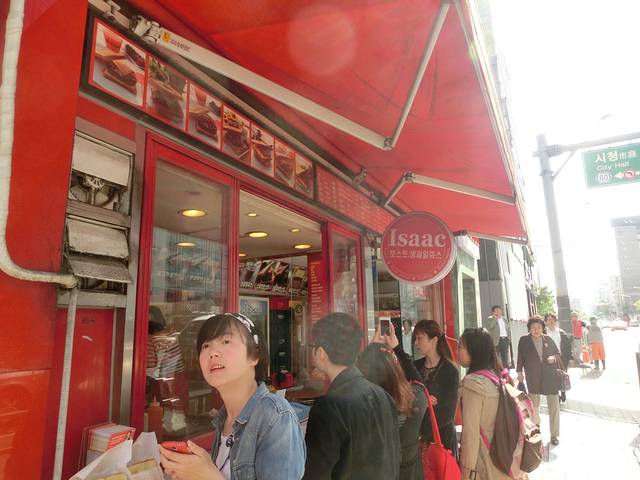 也不知道她从哪儿知道的信息,带着我去明洞的ISSAC吐司店,去买那里的吐司当早餐。ISSAC明洞店位于地铁2号线明洞站旁,沿着中国大使馆门口的小路向南走到头即是。ISSAC是首尔最有名的吐司连锁店,这点还是我回国后,搜集材料时才知道,不得不佩服LP的先见之明。 尽管她旅行时不怎么做功课:)