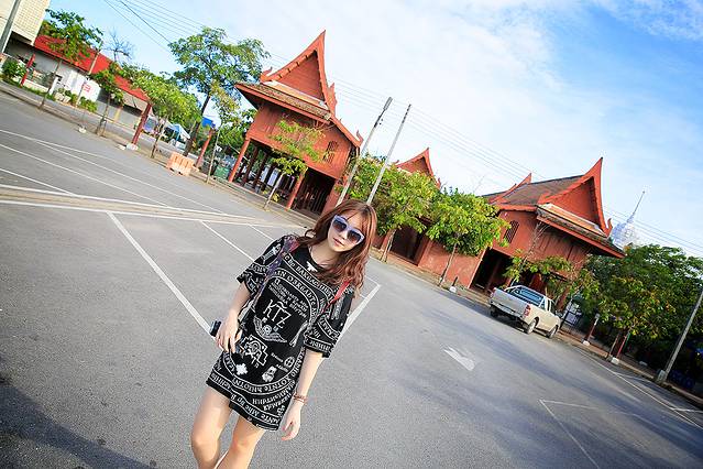 因为我穿的衣服不符合标准,所以进门的时候有衣服租凭的地方,泰国一般在比较正式的场合都不允许衣服不过膝盖跟吊带的哟,所以我变身成了当地人有没有!