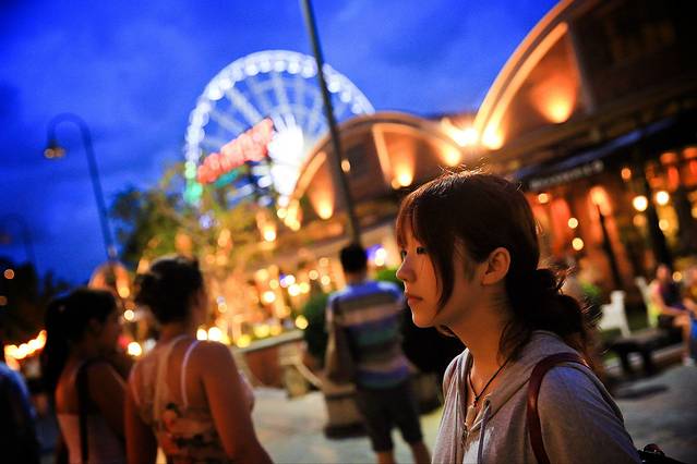 背后有巨大的摩天轮,在刚刚靠岸的时候我们就注意到了。
