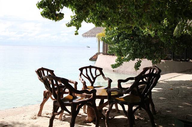到了餐厅,没有了吃饭欣赏景色的雅兴,只想尽快吃完填饱肚子,然后又匆匆回房间。直到我们退房的时候,雨也没停,船要晚上8点才带我们离开,这段时间只能在岛上的小酒吧里呆着。白天的酒吧跟晚上的感觉不一样,多了一分静逸。我们喝点东西,看看相机,像过了一个小资的下午。近晚上的时候,雨终于停了,我们又作了最后的留影,在一片干净的沙滩上,留下我们的誓言。