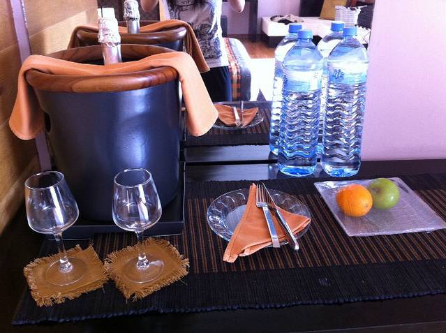 雨还没有停下来的意思,我们的肚子饿的直叫,老公打电话要订餐到房间,结果被告之,不可以,一定要去餐厅吃,说屋里有准备雨衣,让我们穿起来去餐厅。我们翻了好几遍,确定屋里没有,再打电话过去,真是下雨,做事的效率都慢了,等 了好半天,管家才开着小车来接我们,看着别人都穿着雨衣去餐厅,也是一种浪漫,我们却像落汤鸡一样。