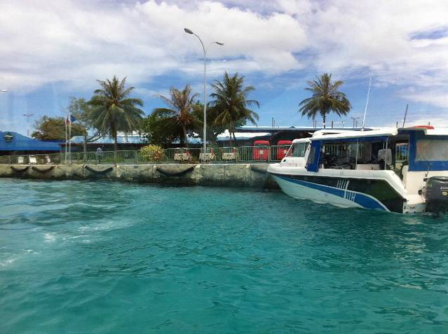 第一次坐新航的飞机,确实各方面的设施服务都比之前坐的飞机好,别的没多想,看了两部电影,小憩一下,马代就到了。马累的机场小的可怜,飞机停在停机坪,我们下机走了两步就到候机厅,直接过安检,不过人多排了好一会队,顺利过关,取行李,走出大厅,闻到海的味道,温热气扑鼻,看着那些各个岛来接机的人,心想:马代,I'm coming!