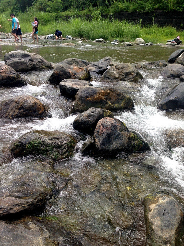 入口处一个大池子,有小孩在里面嬉戏,那么热的天,一定很舒服吧。