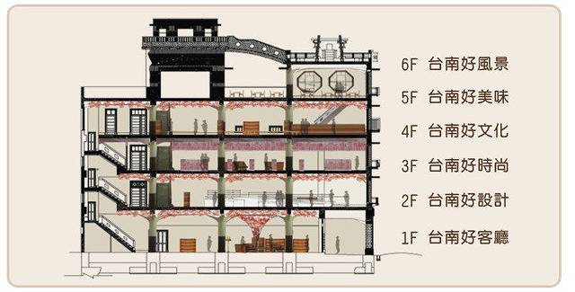 每层楼以“台南好”为开头,台南好时尚、台南好设计、台南好美味、台南好风景……