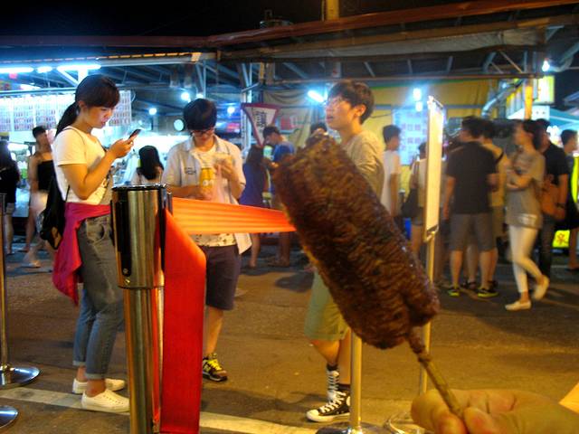 基山路上的美食最为集中,特别是旧道口下车以后,7-11入口这一段,游人如织,好多游客都是来此一日游的。在白日老街的人潮褪去之后,夜晚的竖崎路就成了最美也最热闹的街巷了。