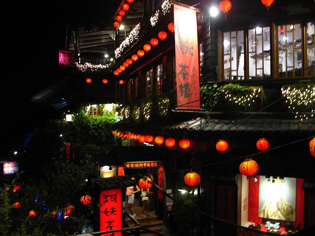 入夜后的九份像是换上了新妆,美食落幕,而在竖崎路上,风情款款而来。