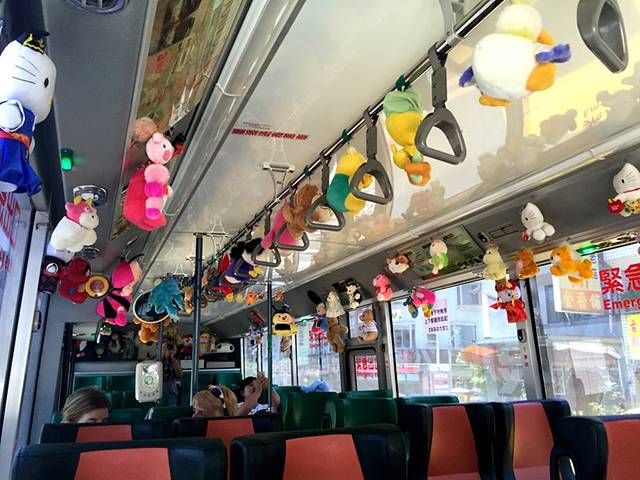看车的内部,全部吊满了长毛绒小玩具,可爱的不行不行的
