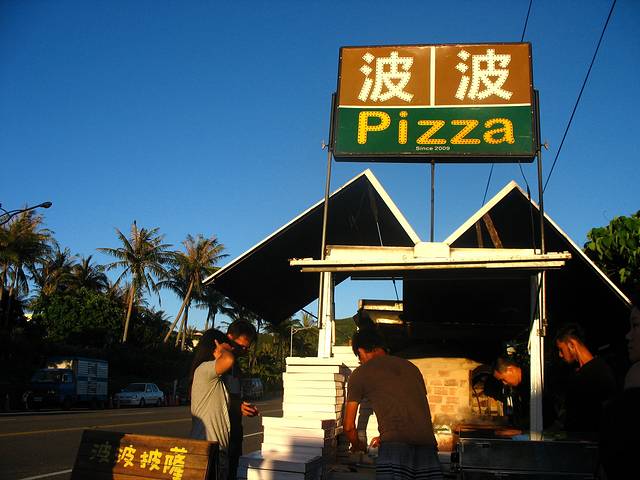 晚上五点左右,大街夜市便稀稀拉拉搭了起来,街尾处有一家做pizza的,生意非常不错,只提供现做四款披萨,大约2,300的样子,有人说好,有人觉得并无特别之处。