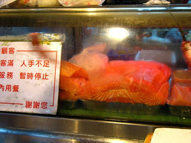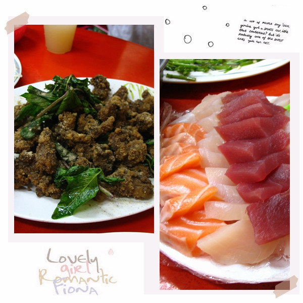 我并没有把后壁的海鲜当做必点美食做推荐,是因为我觉得,这里海鲜烧出来的味道并没有想象中那么美味,比较下来,依旧觉得对花莲夜市吃的海鲜更有印象;其次,都说生鱼片切的很厚,确实很厚,不过口感最棒的三文鱼大约只占1/4盘,剩下的鱼片当然也很新鲜很不错,但远不及三文鱼(在我心目中,生鱼片三文鱼排第一),另外,由于小辉哥生意太好,而堂吃的桌椅有限,所以必然享用的环境有点嘈杂,最后,因为我们点的是套餐,所以还会配套一些并不是十分中意的菜。