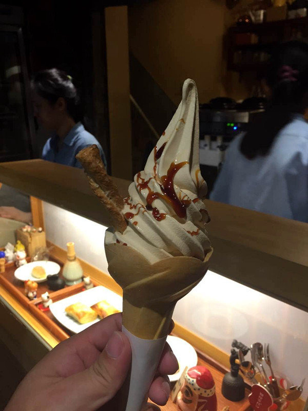 冰激凌来不及做,大家都在排队拿号,然后看着屏幕上的数字。这里卖的只有一种口味,焦糖味。