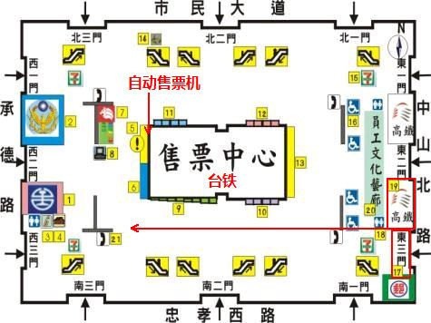 大巴在台北车站东三门停靠,进入台北车站后,入口右手边就是高铁售票处,如果时间充裕,可以直接在柜台先把高铁票取出来。