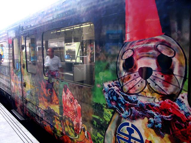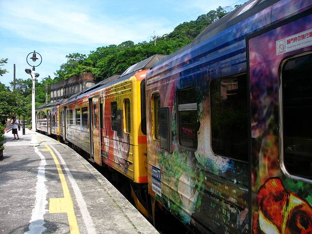 平溪小火车与传说中的一样,花里胡哨的,一眼就认得出。
