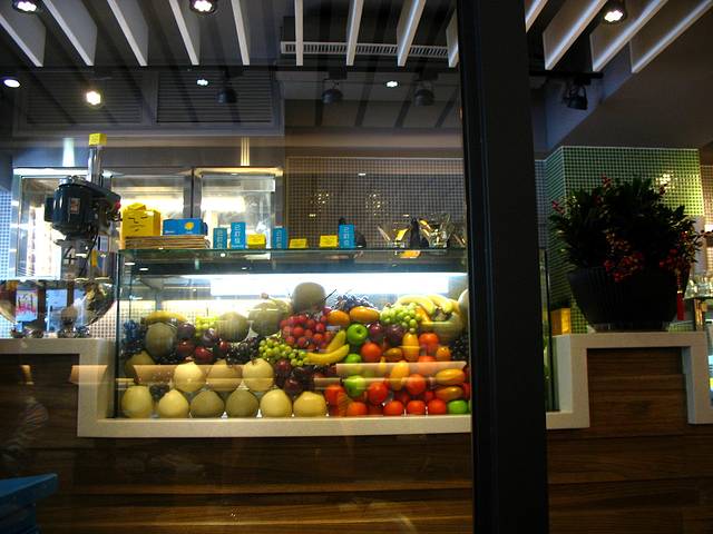 逛到莉莉水果店,名声在外,不得不尝一尝它的好味道。客流量不小,不过等了一会就有位子了,点好甜点之后,坐下来等。
