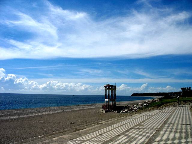 在海生馆真的是花了大半天的功夫,出来的时候已超过三点了。于是,觉得直接去后壁吃海鲜。路上经过白沙湾海滩,据说海角七角就在这一点附近。
