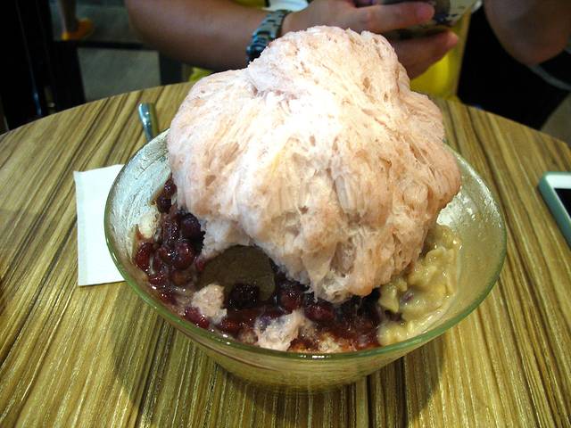 我们叫的是红豆冰。身体不好的人,只好看着别人吃。