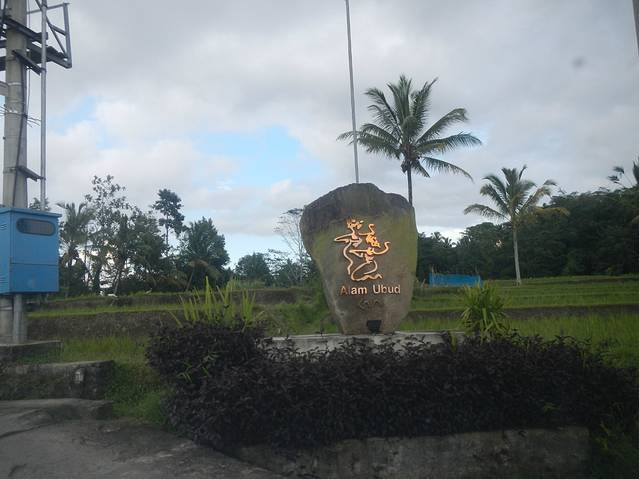 远远矗立的----Alam Ubud标志(位于巴厘岛南部),掩映在一片稻田中,起初真有些失落。